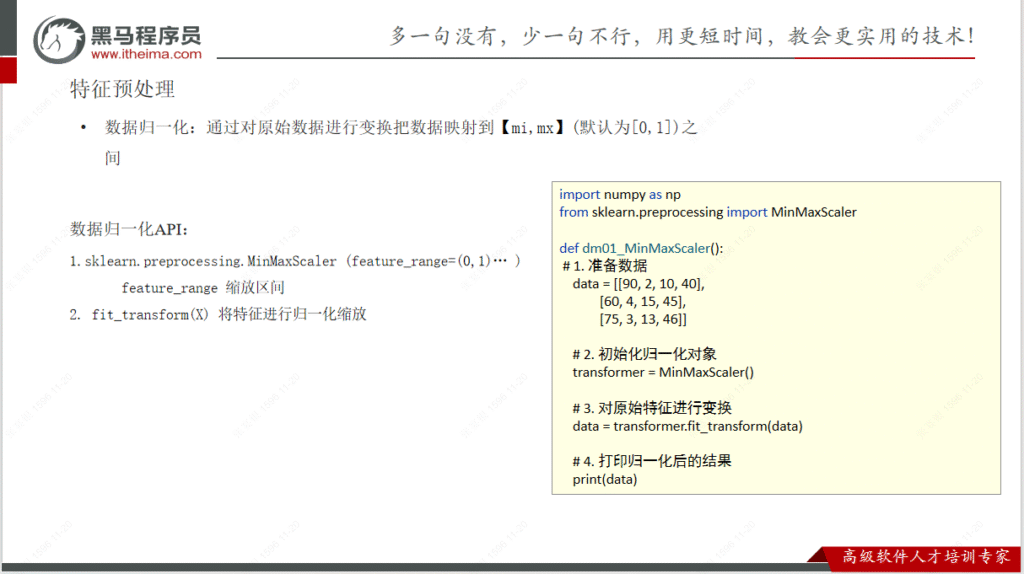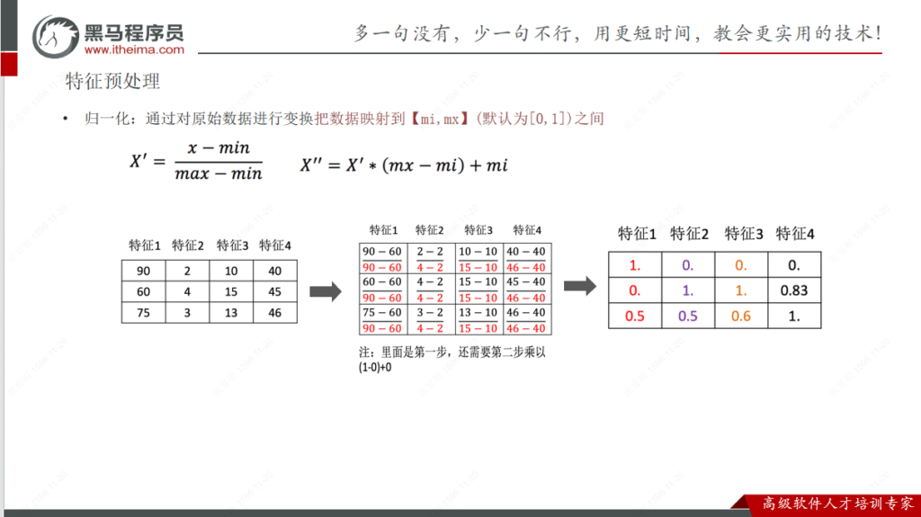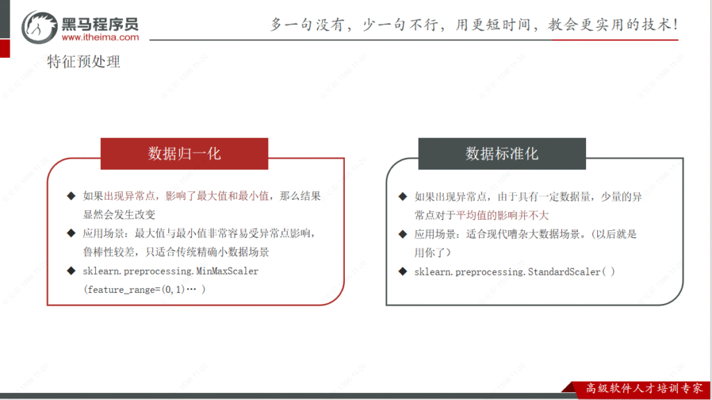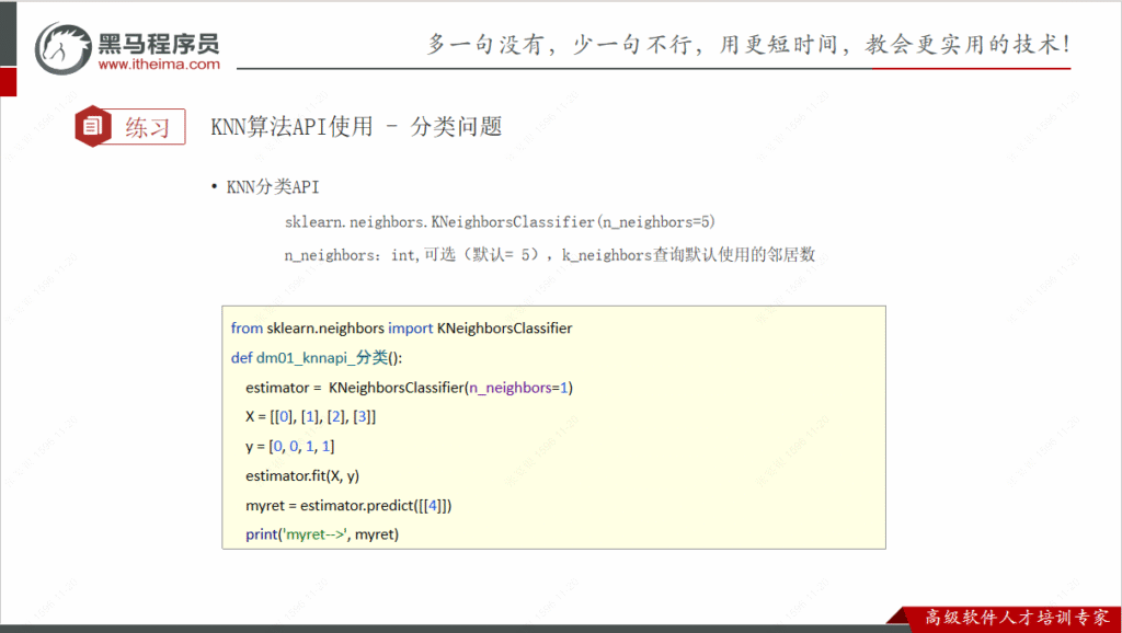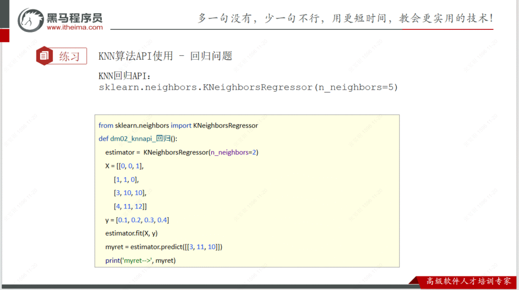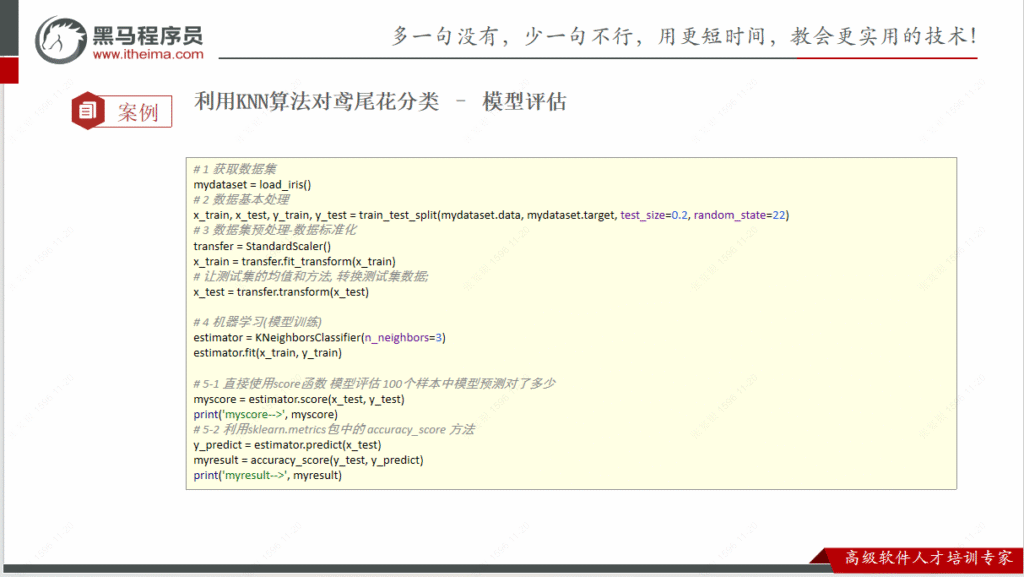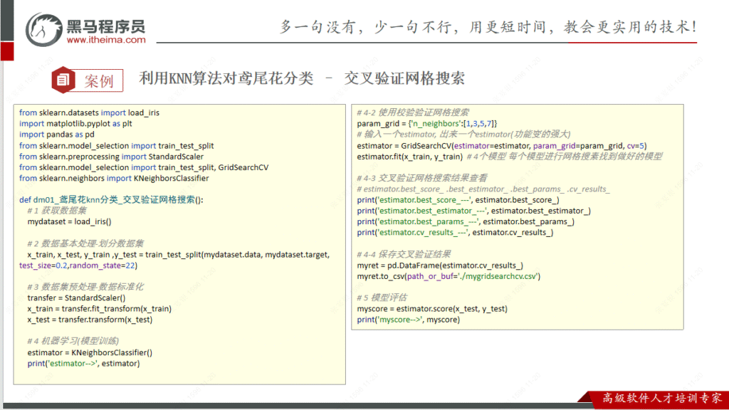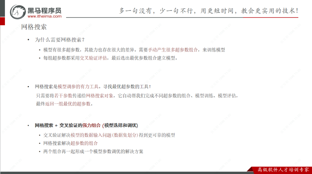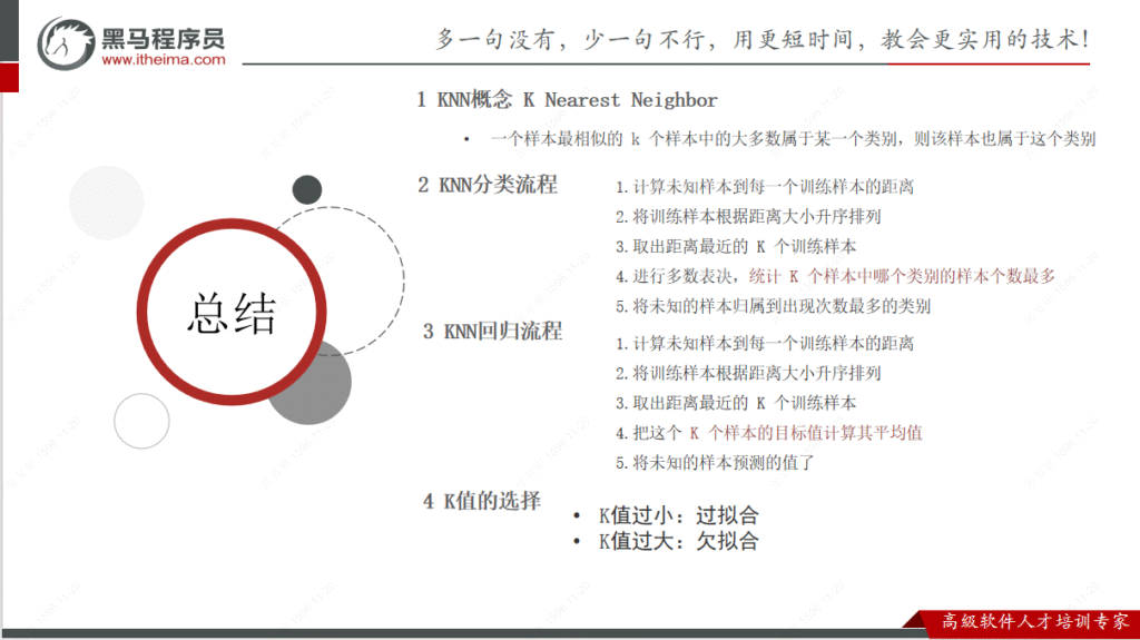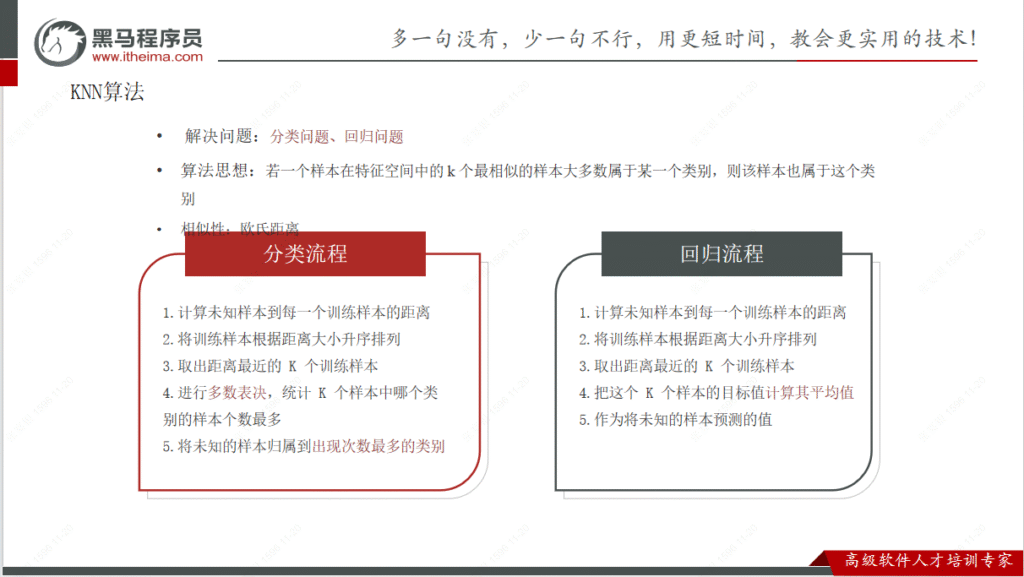 K近邻算法原理 核心其实是如下两个API : 分类 + 回归 距离公式了解即可,API自己去计算的 特征预处理:归一化 + 标准化 KNN 算法调用示例代码 模型评估方法 : 交叉验证 + 网格搜索 交叉验证 + 网格搜索 模型评估示例代码 文章导航 人工智能总纲 机器学习-线性回归