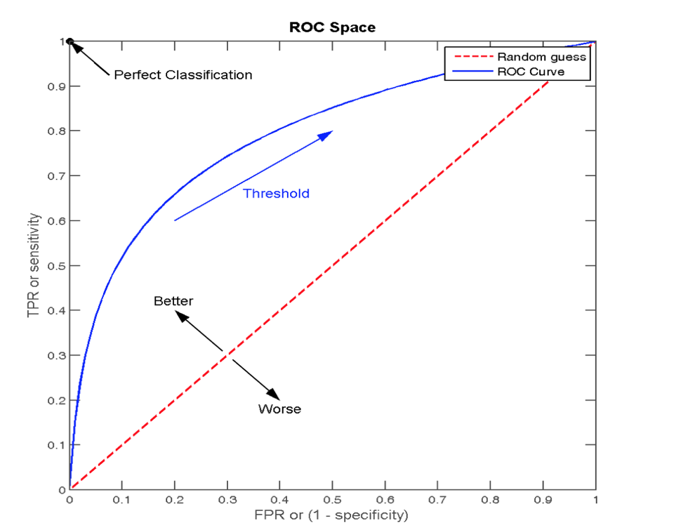 • 0.5<AUC<1,优于随机猜测。这个分类器(模型)妥善设定阈值的话,能有预测价值。