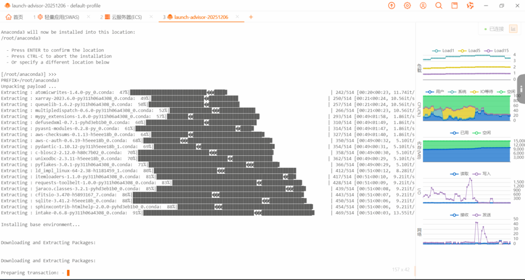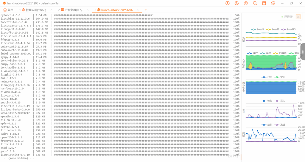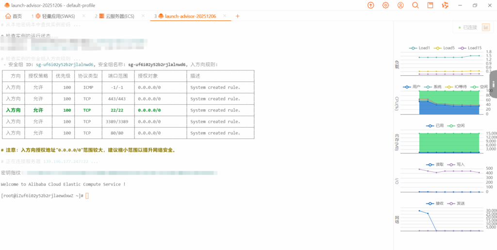 阿里云的linux界面加资源监控了,真tm漂亮!