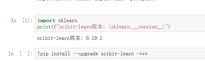 !pip install –upgrade scikit-learn 直接命令行在jupyter升级,看不见进度,耗时极久