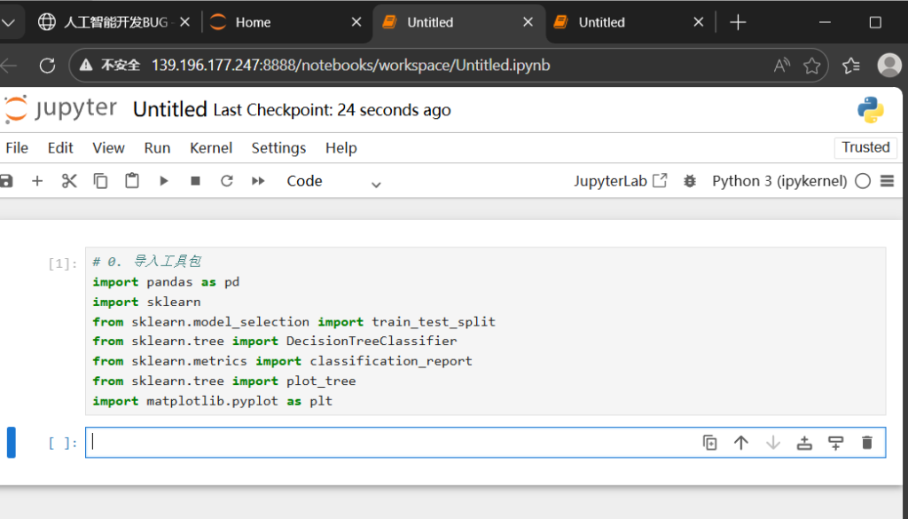 在阿里云部署的annaconda环境,再次导入决策树包,不再报错!