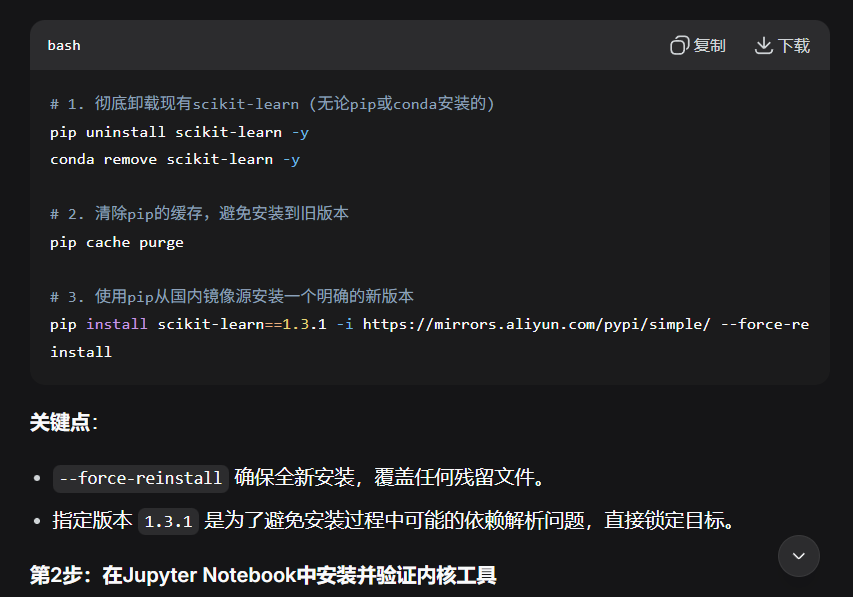 !pip install –upgrade scikit-learn -vvv 试图打印安装进度,未生效