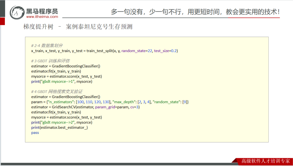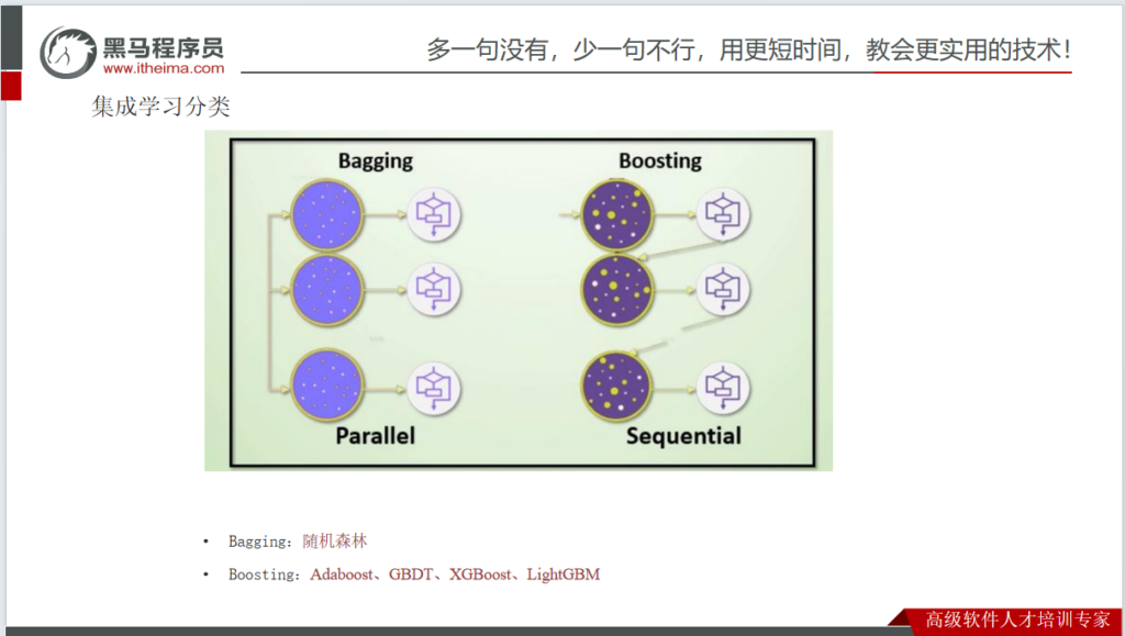 集成学习分类 : Bagging + Boosting Bagging Boosting Bagging VS Boosting 随机森林步骤 随机森林 – 泰坦尼克号案例 Adaboost算法 AdaBoost实战 – 葡萄酒数据 残差提升树 梯度提升树 梯度提升树的构建流程 梯度提升树-泰坦尼克号生存预测案例代码 极端梯度提升树 XGBoost 文章导航 机器学习 – 决策树API 机器学习 – 集成学习 01-RandomForest 代码实操