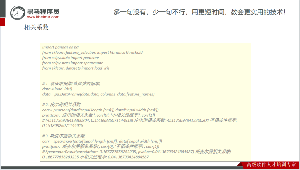 # 与pearsonr()类似,spearmanr()也返回一个包含两个值的对象: